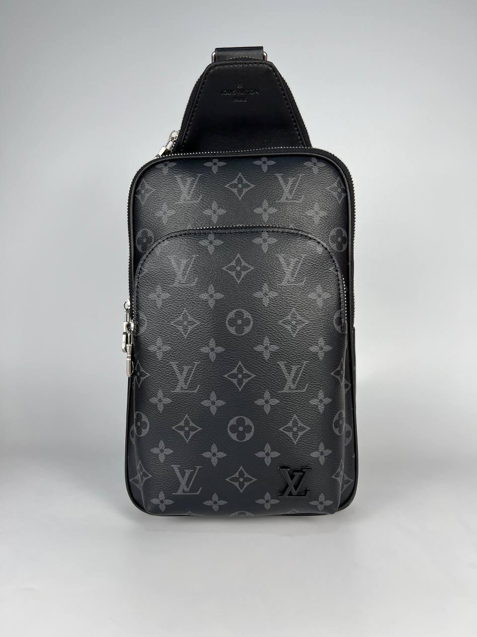 Чоловіча чорна шкіряна сумка слінг Louis Vuitton